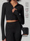 Felpa corta con cappuccio, con zip e laccetti, maniche lunghe, tinta unita, felpa sportiva da donna