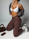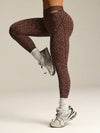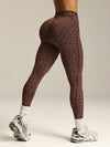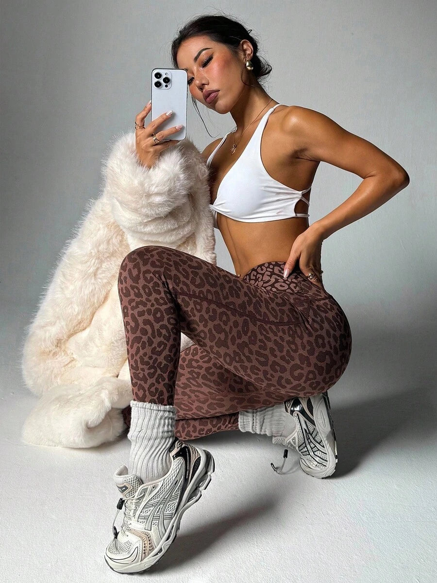 Leggings sportivi a vita alta, senza cuciture, sexy, con stampa leopardata, ad alta elasticità, con vita incrociata scanalata
