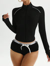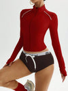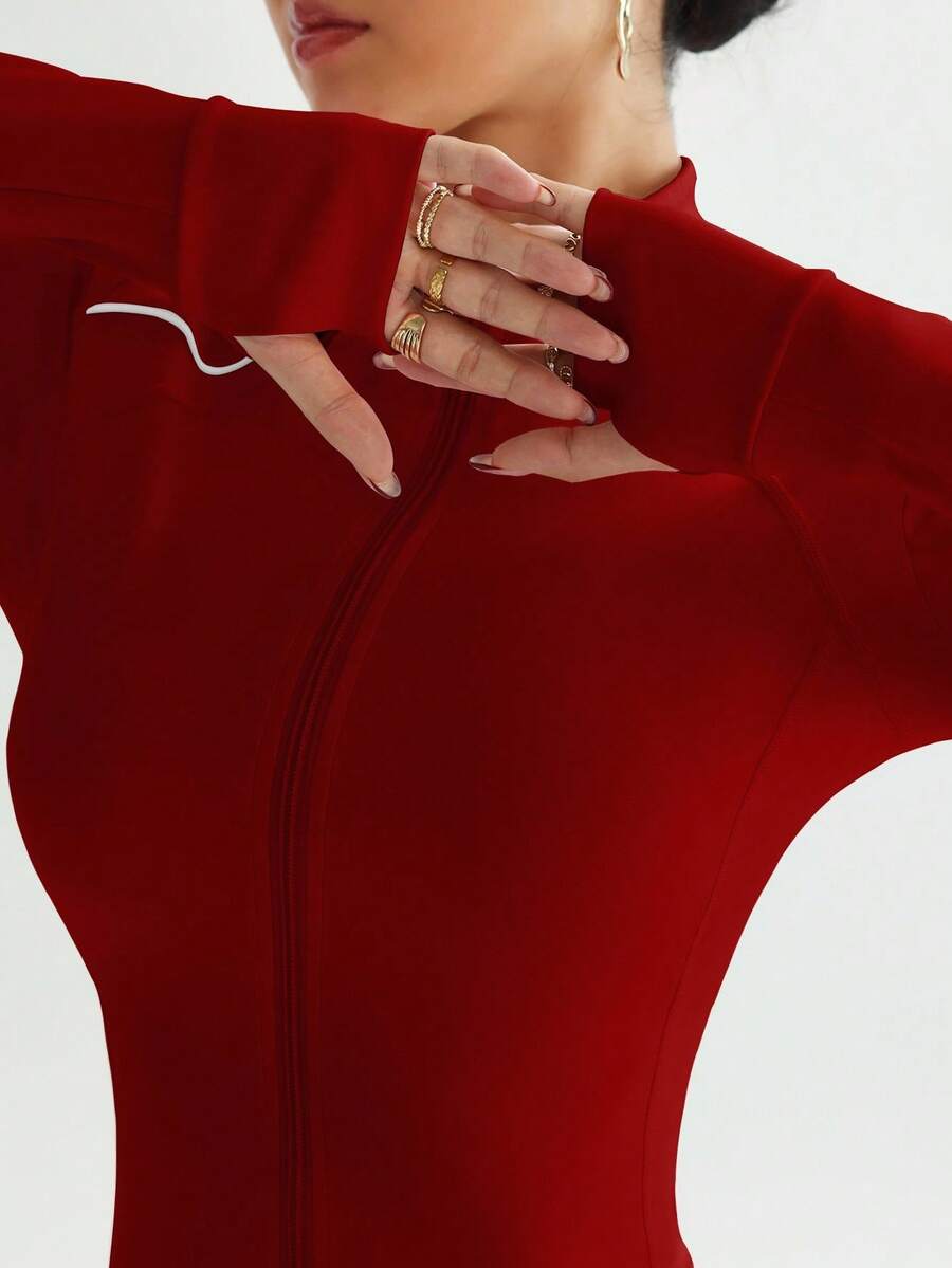 Giacca blocchi per colour alla moda, colletto a stelo e design a chiusura lampo