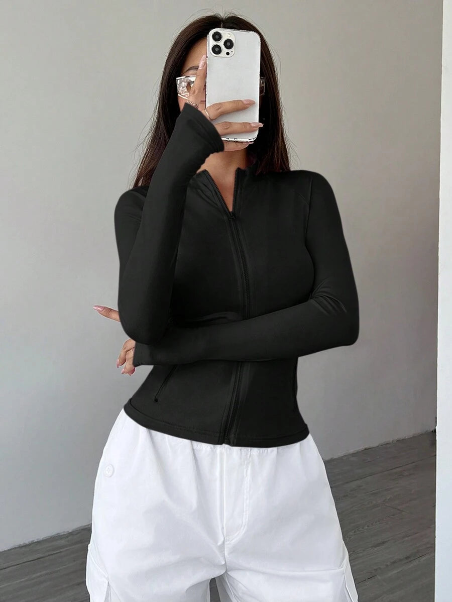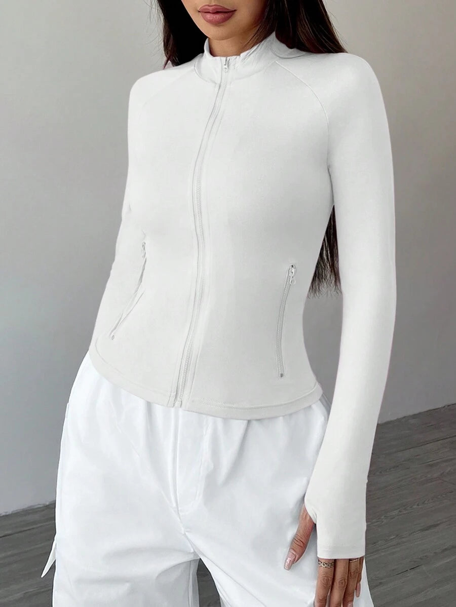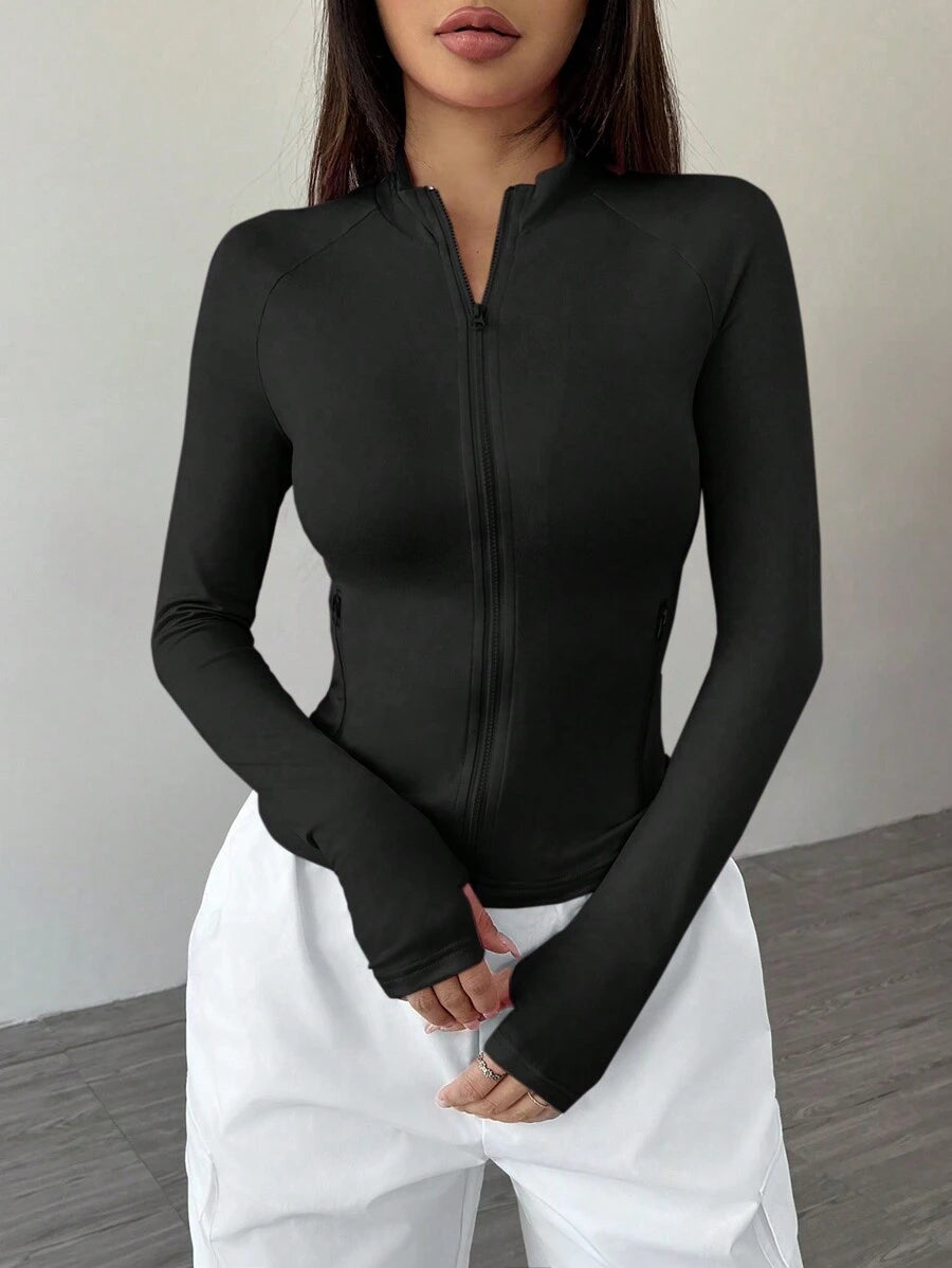 Giacca da donna con colletto rialzato, con chiusura lampo, a vestibilità aderente