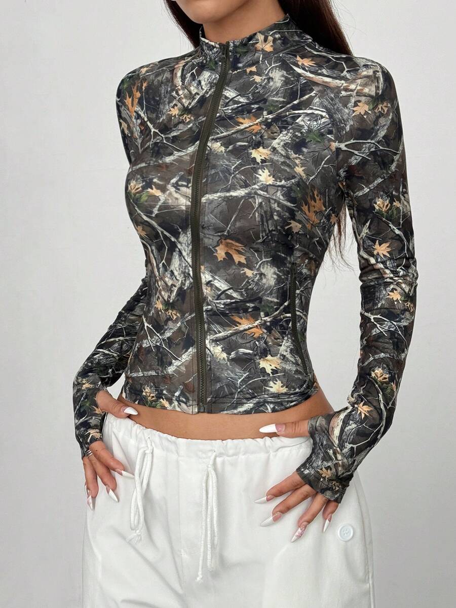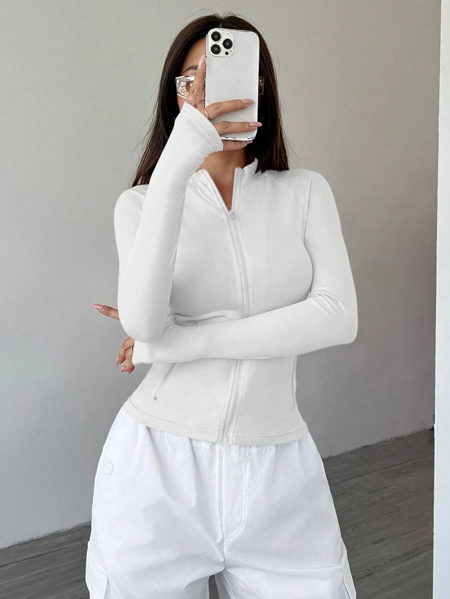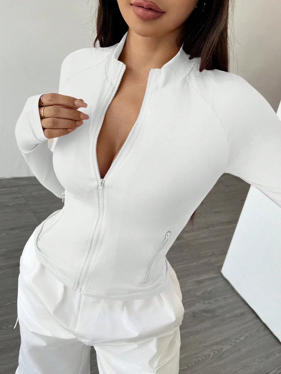 Giacca da donna con colletto rialzato, con chiusura lampo, a vestibilità aderente