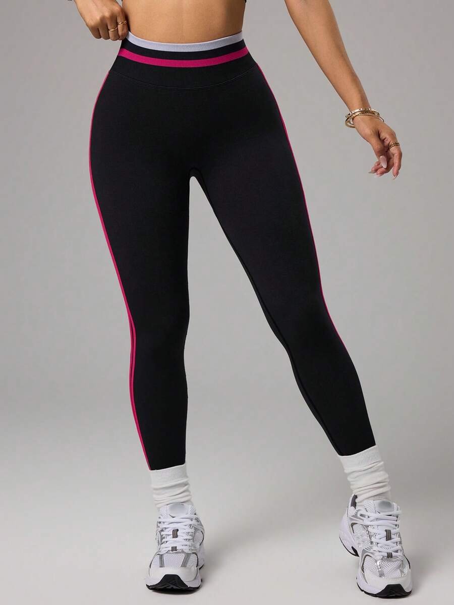 Leggings sportivi casual da donna con strisce laterali e effetto lifting