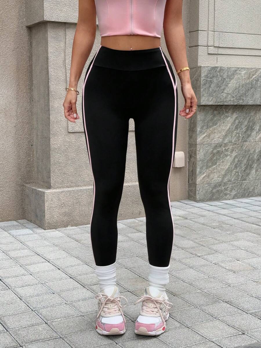 Leggings sportivi neri da donna a 3/4 con pannelli a contrasto