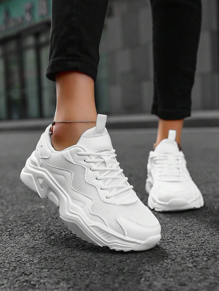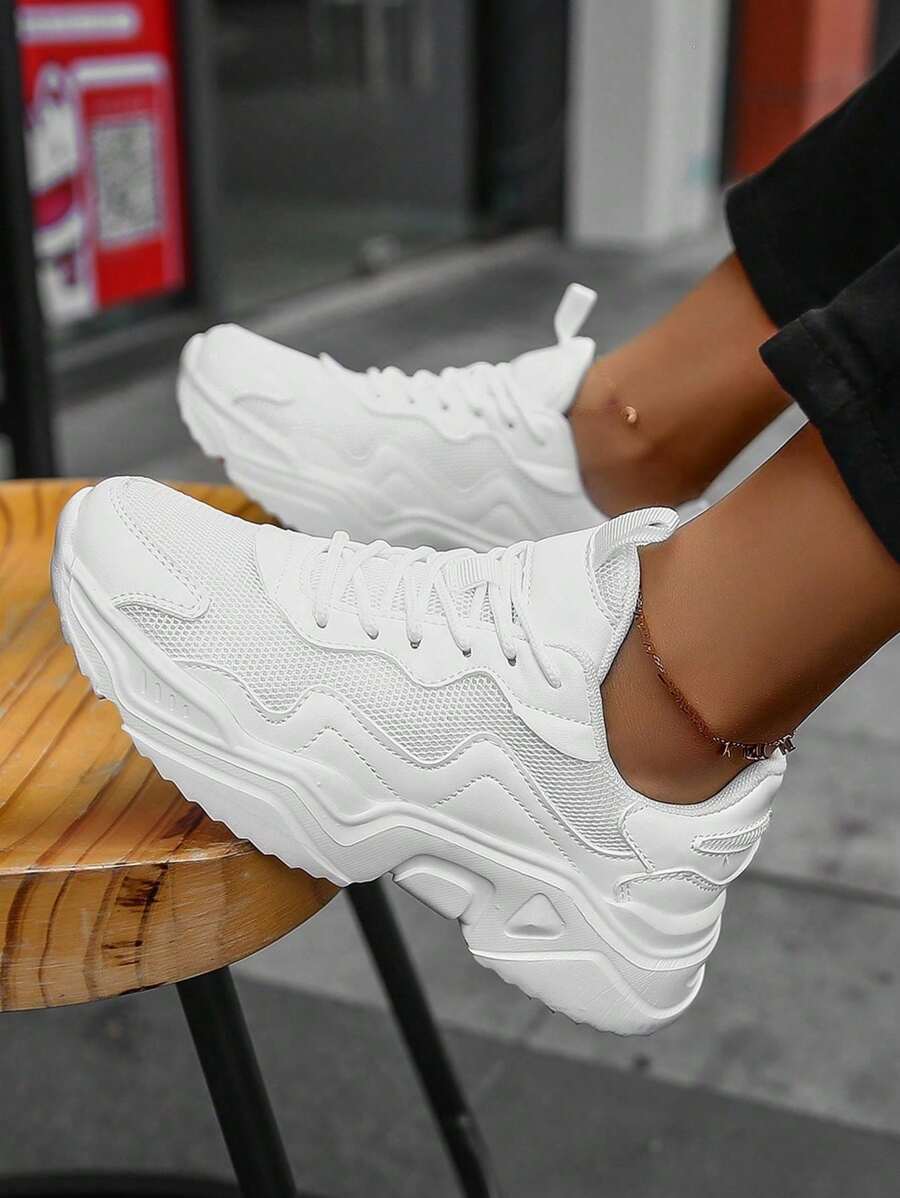 Nuove scarpe bianche da donna con piattaforma alla moda e comode con una tomaia in mesh e pelle ventilata