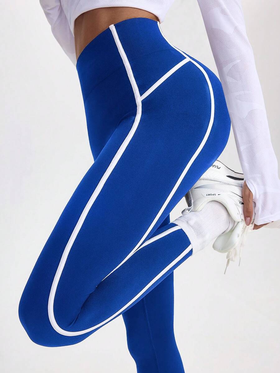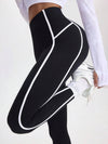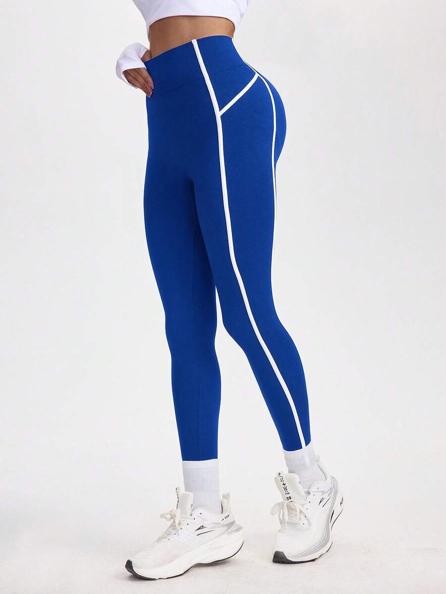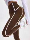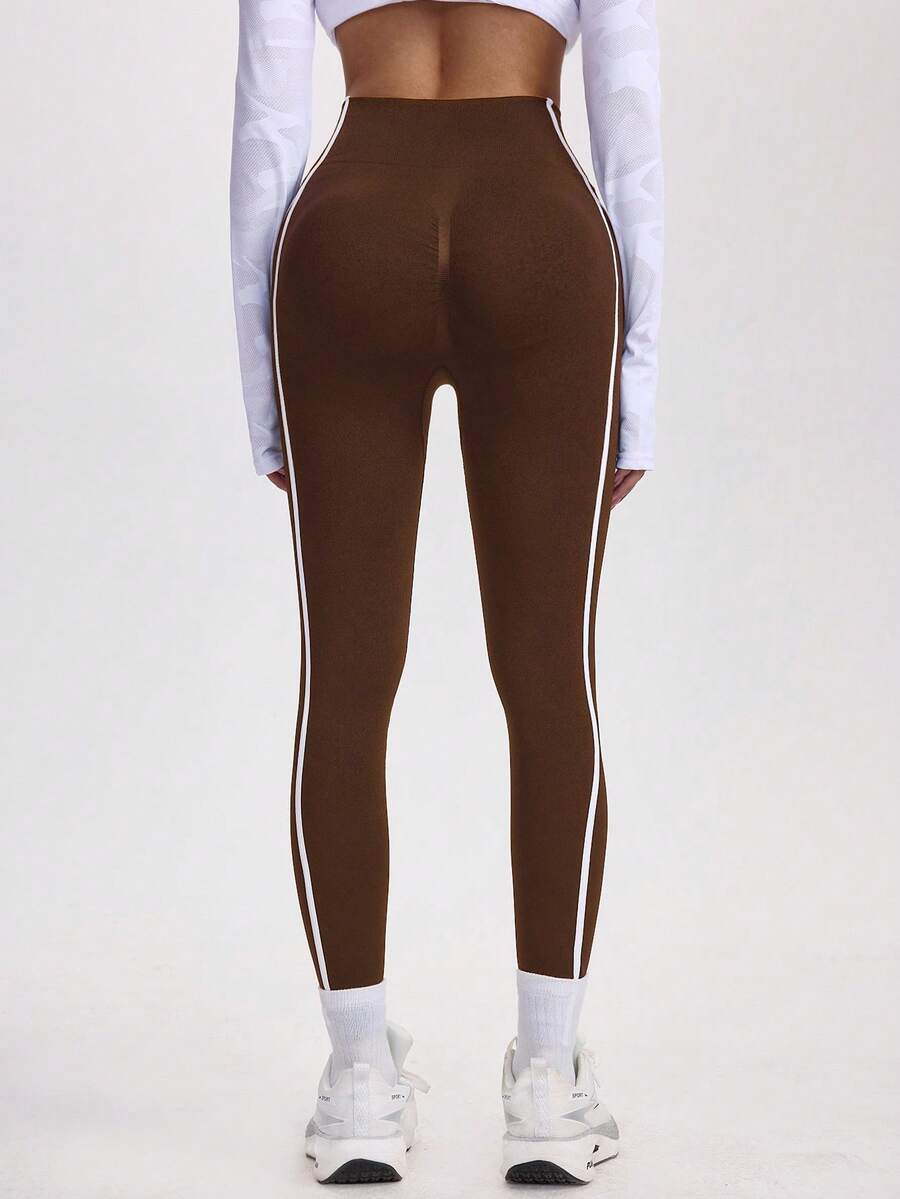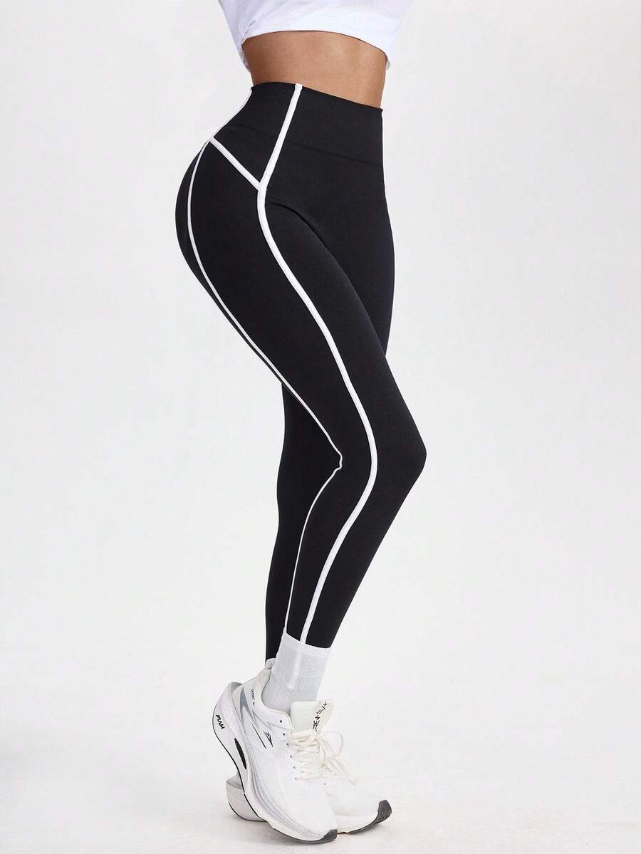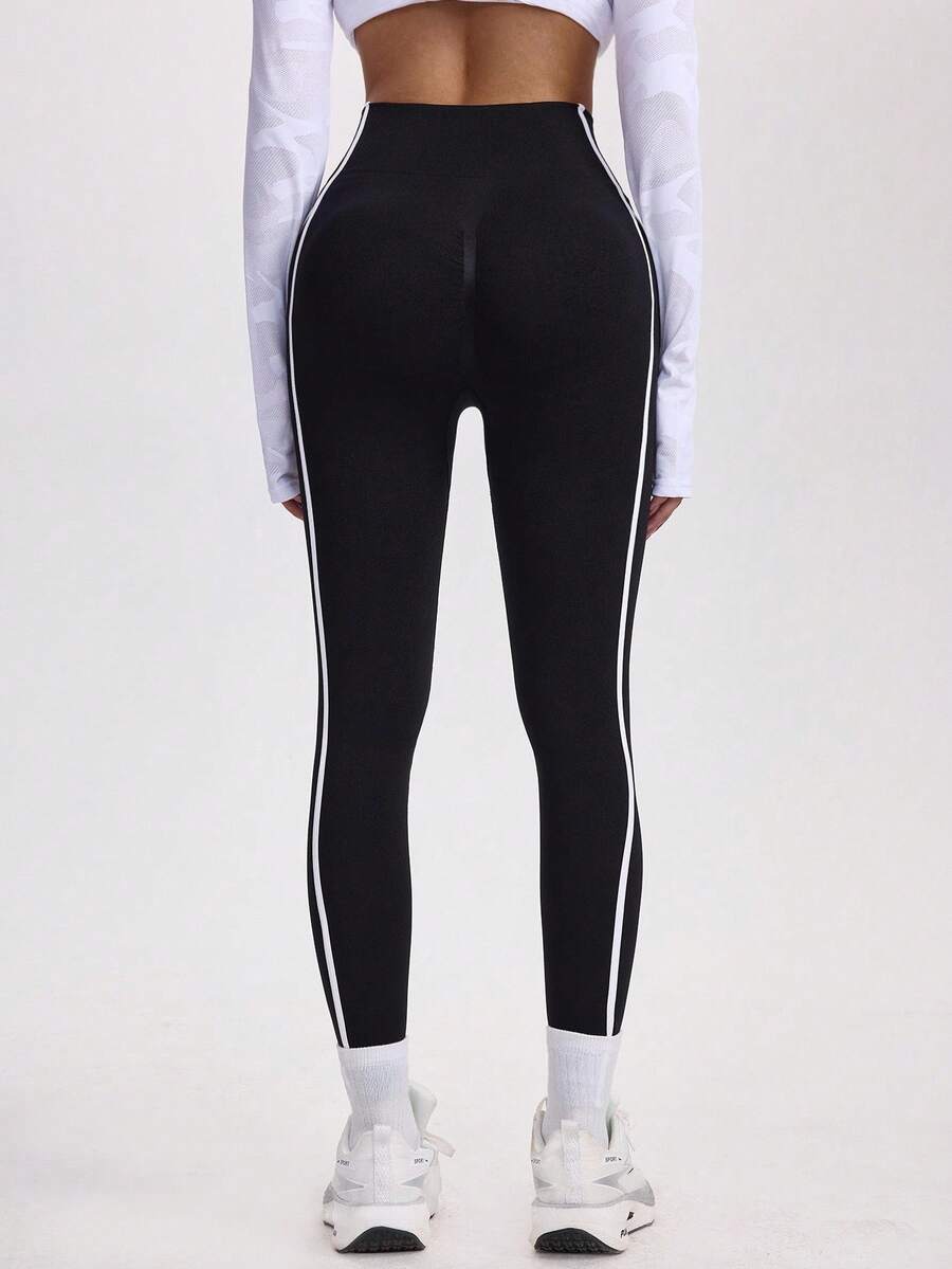 Pantaloni da yoga a vita alta a righe bicolore, design slim fit stile europeo e americano, tessuto ad alta elasticità che valorizza la silhouette