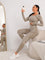 Set da palestra colorblock senza cuciture Set da yoga Maglietta con foro per pollice & Leggings con controllo di pancione
