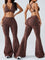 Set Reggiseno sportivo e pantaloni a zampa di donna con stampa leopardata, scollo a V profondo con incrocio di cinturini