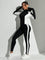 Set sportivo da donna con chiusura lampo frontale, blocco di colori, manica lunga e leggings