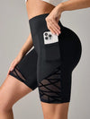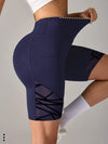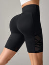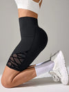 Shorts sportivi senza cuciture in vita alta con inserti in in rete floccato