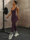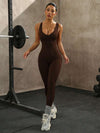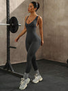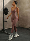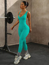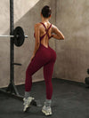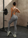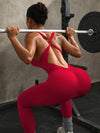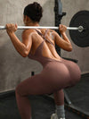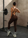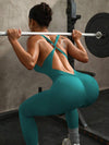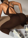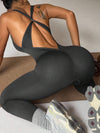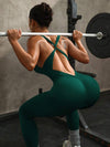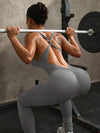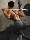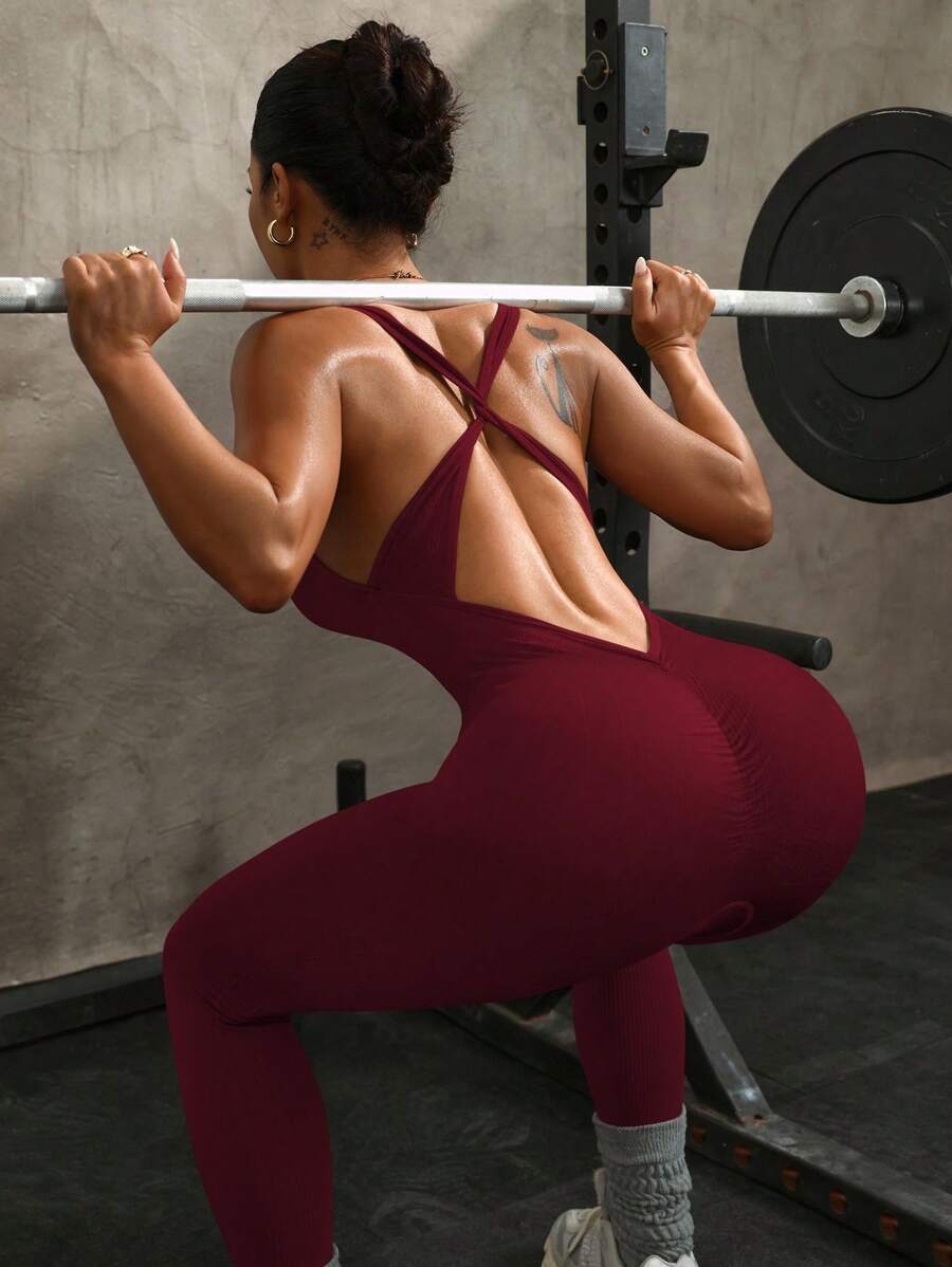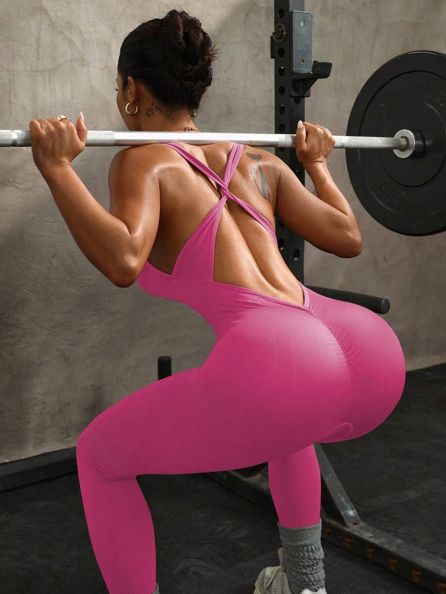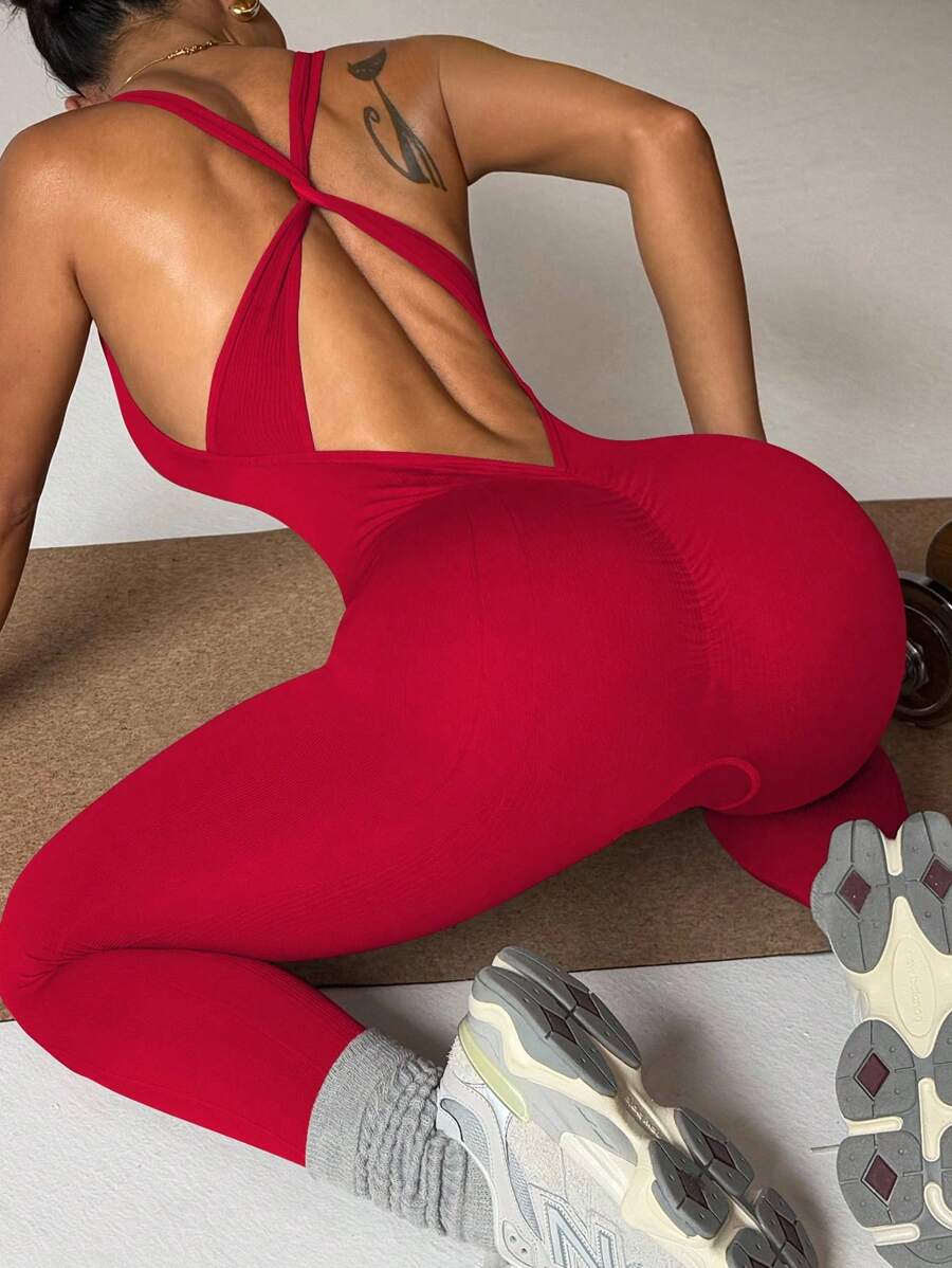 Tuta aderente sportiva e alla moda da donna con design incrociato sulla schiena
