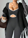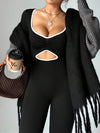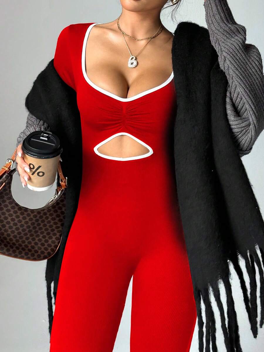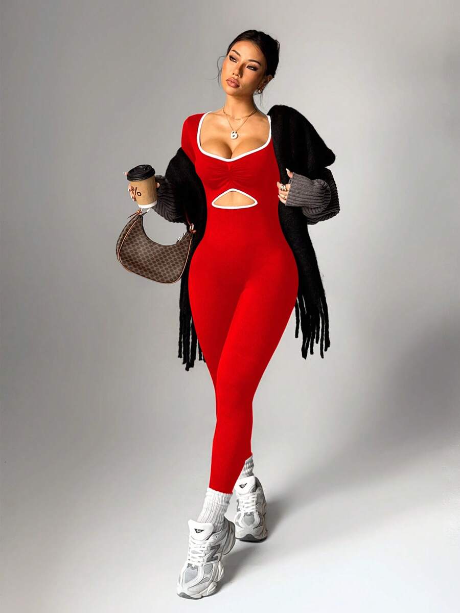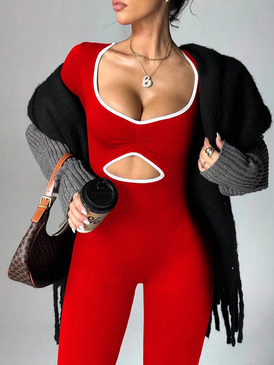 Tuta da donna sportiva e sexy con design a contrasto di colore, che valorizza la figura, adatta per fitness e yoga