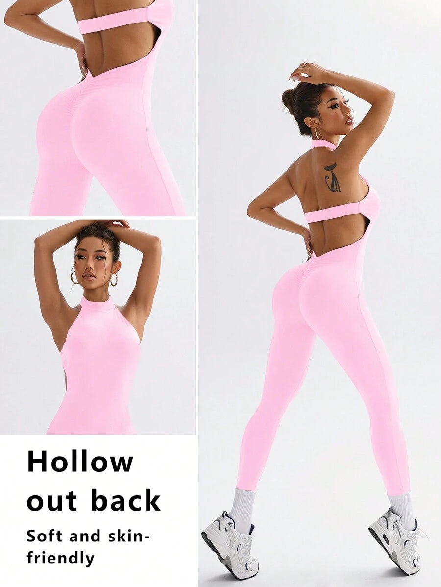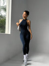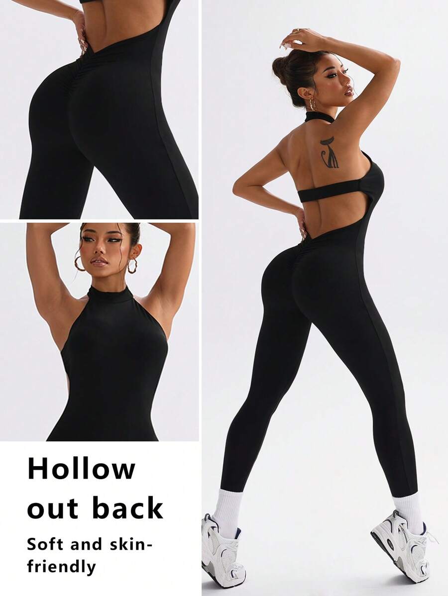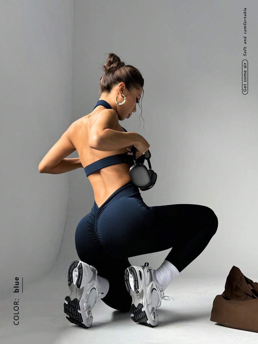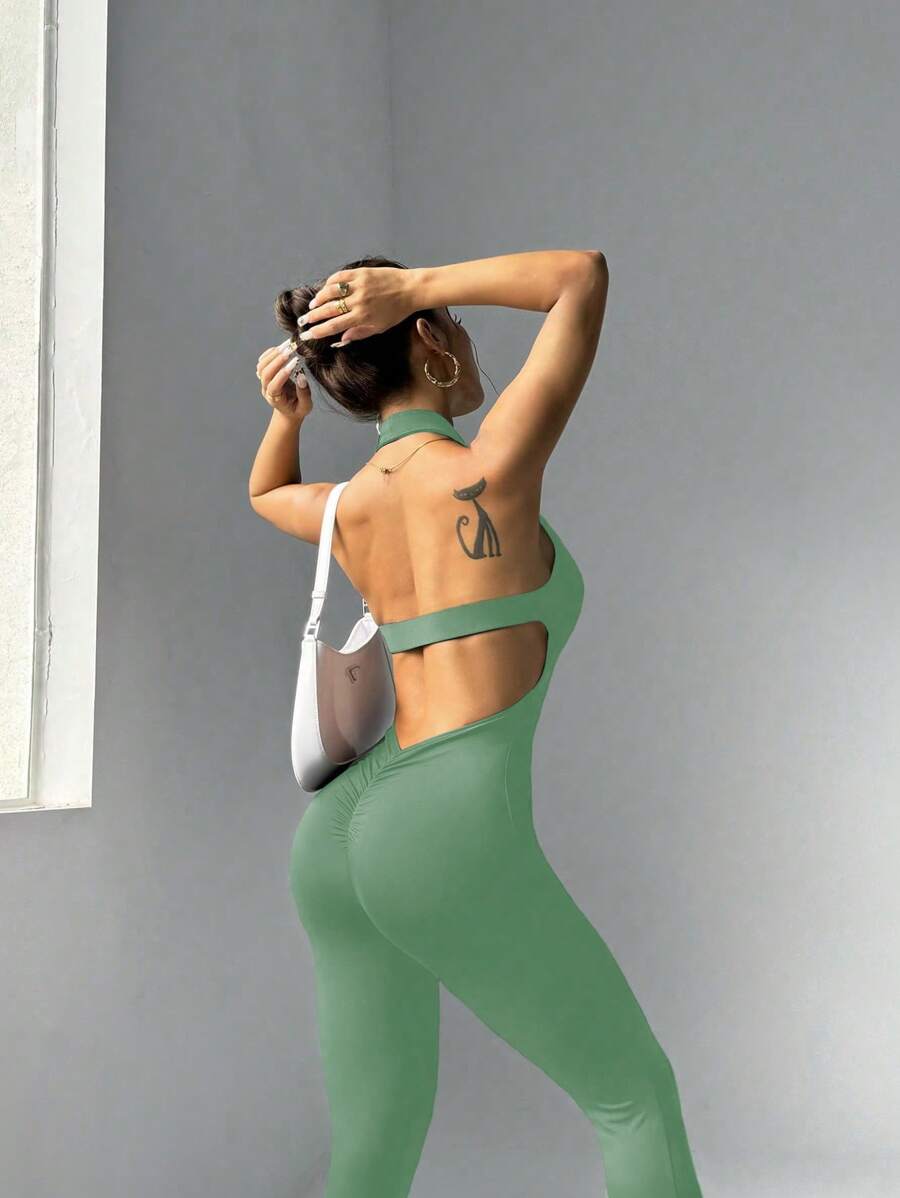 Tuta da ginnastica elegante e sexy, stile sportivo basic, che valorizza il lato B, con taglio alto in vita