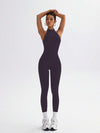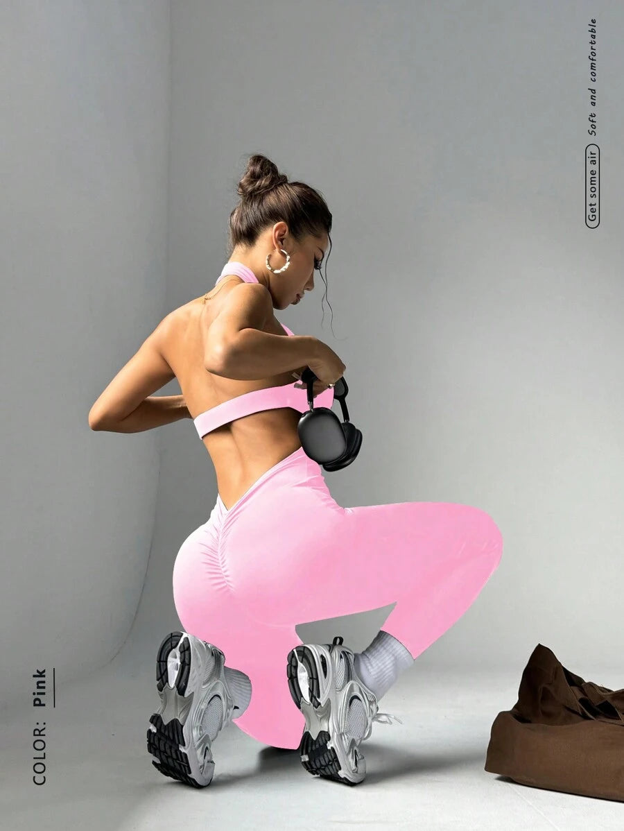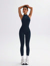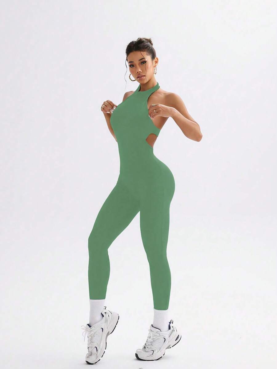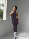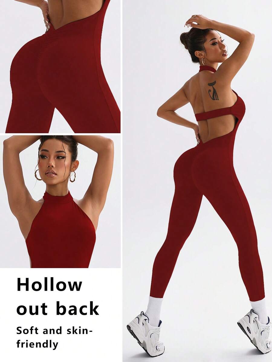 Tuta da ginnastica elegante e sexy, stile sportivo basic, che valorizza il lato B, con taglio alto in vita